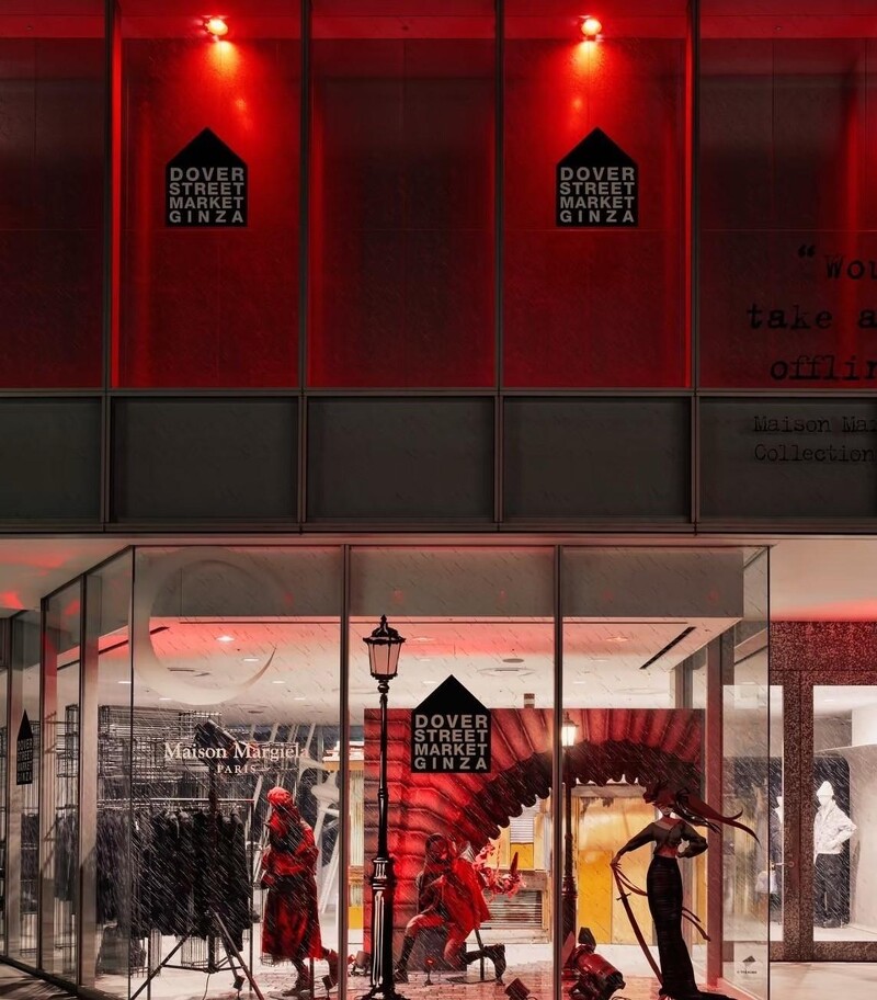 在Dover Street Market Ginza外墙上出现了久保带人所绘製的漫画《死神》中的人物的全身插画,画中斎藤换上了Artisanal系列中的高定,透过玻璃外墙反射出月光照耀下的都市氛围,仿佛带领观者置身于巴黎的雨夜,灯柱与拱桥的细节更为画面增添了巴黎街头特有的浪漫与历史感。透过这场视觉对话,Maison Margiela与久保带人共同探索了时尚与漫画艺术的交汇点,将两种截然不同的文化背景融为一体,为观众带来了一场视觉与感官的双重飨宴。